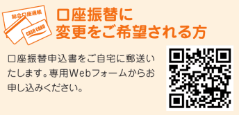 「口座振替」は、お客さまの預金口座から自動的に毎月、当社指定の振替日にお支払いいただきます。当社所定の申込書または金融機関所定の申込書によりお申し込みください。