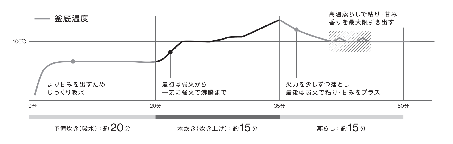 火力が違うからつやつや、ふっくら、スピーディに炊き上げます。