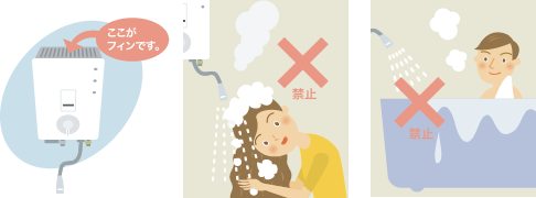 ■小型湯沸器をお風呂に使ったり、シャワーとして使用することは絶対におやめください。