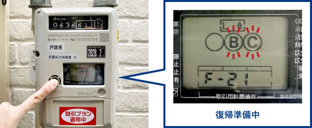 ※もしガスメーターが復帰しない場合には、当社までご連絡ください。